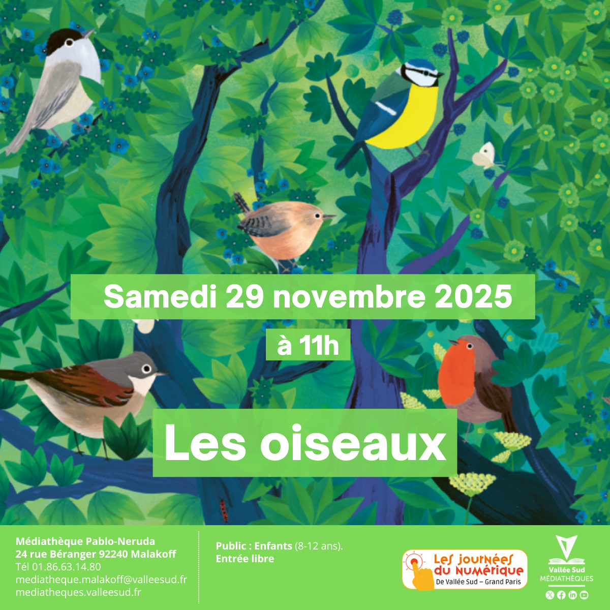 Grâce à la réalité augmentée, plongez dans l’univers des oiseaux qui peuplent notre environnement ! Les enfants apprennent à les reconnaître visuellement et à identifier leurs chants à travers un jeu de memory collectif.