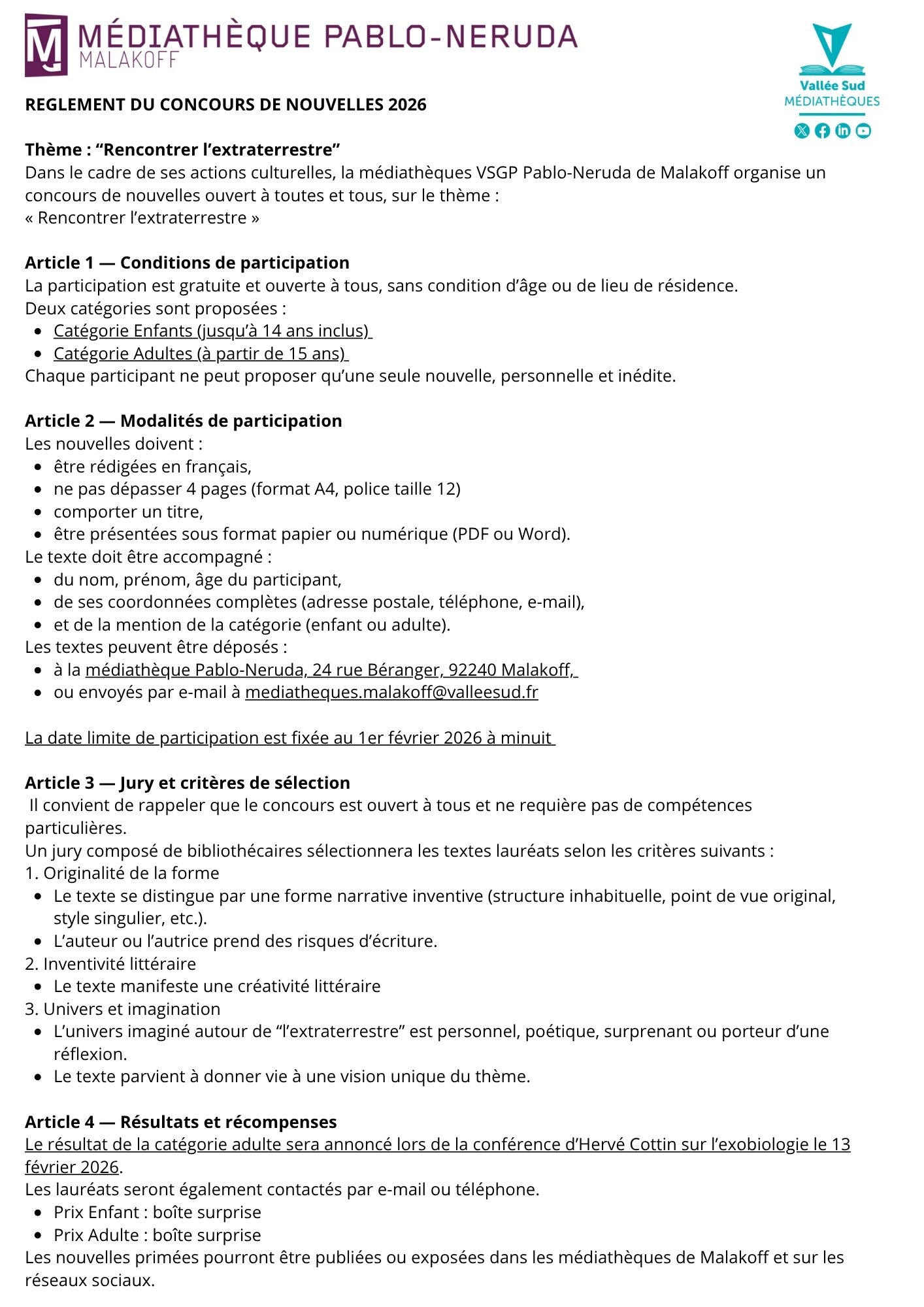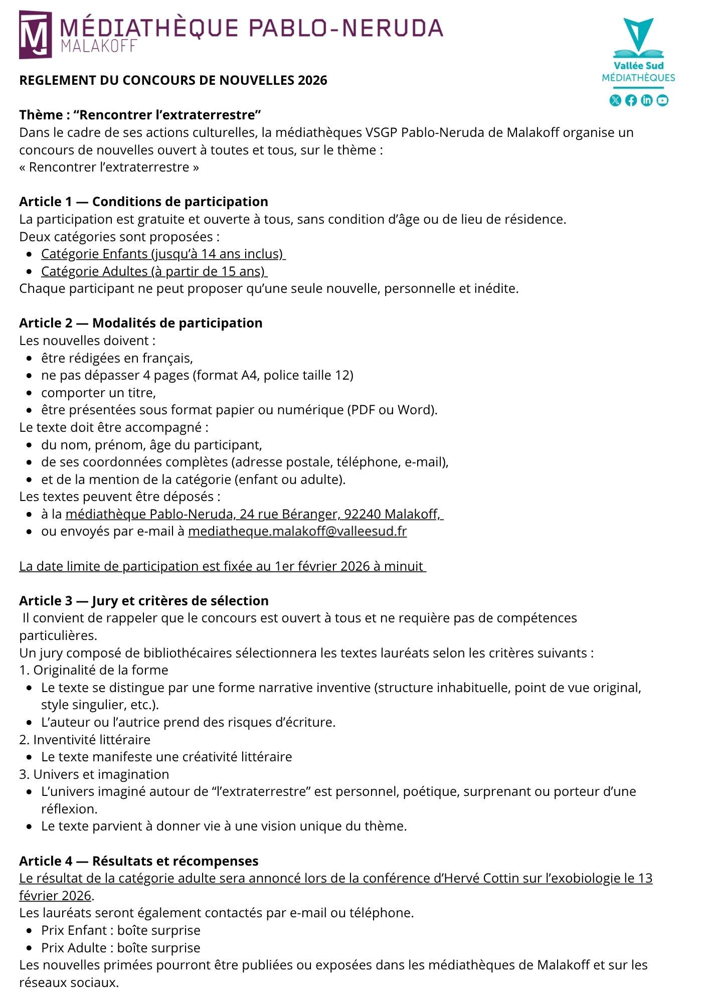 La participation est entièrement gratuite et s’effectue jusqu’au 1er février 2026.